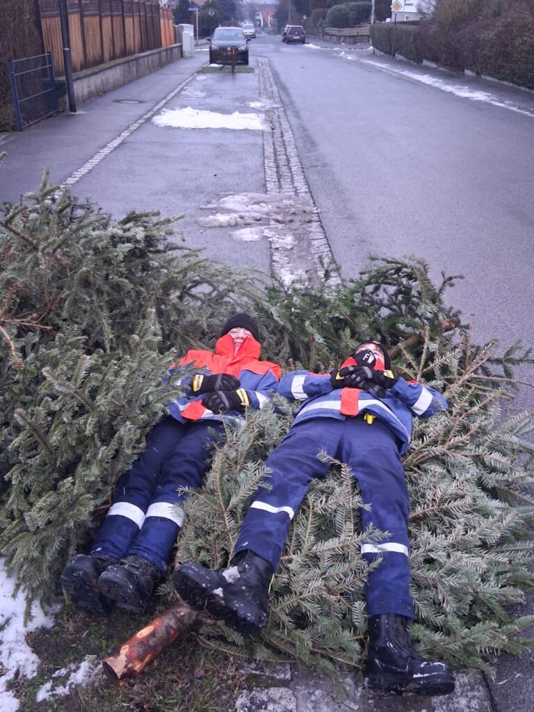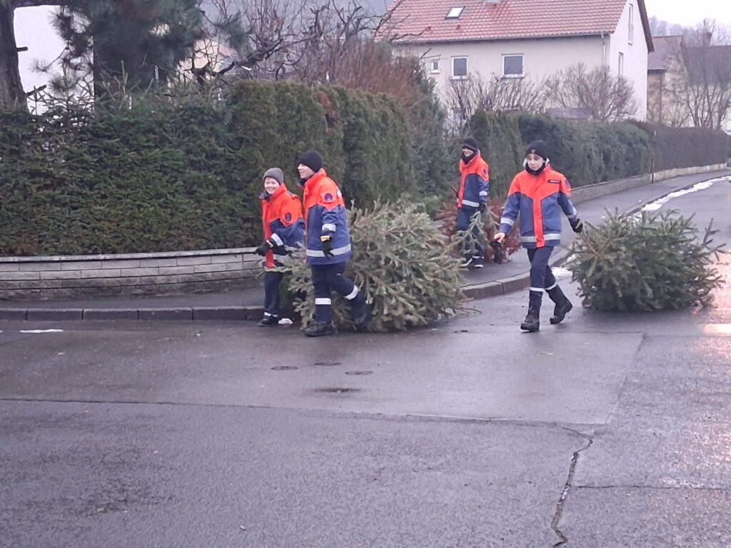 Am heutigen Tag starteten wir pünktlich um 8 Uhr mit unserer alljährlichen Christbaumsammelaktion. In bewährter Weise teilten wir uns in drei Gruppen auf, um die Bäume in verschiedenen Gebieten einzusammeln. Dabei wurden unsere 15 Jugendlichen von 12 aktiven Feuerwehrleuten tatkräftig unterstützt. Dank dieser starken Beteiligung konnten wir das gesamte Ortsgebiet bereits gegen 11 Uhr abdecken. Im Anschluss gab es zur Stärkung leckere, warme Wiener und Joghurt für alle Helfer.