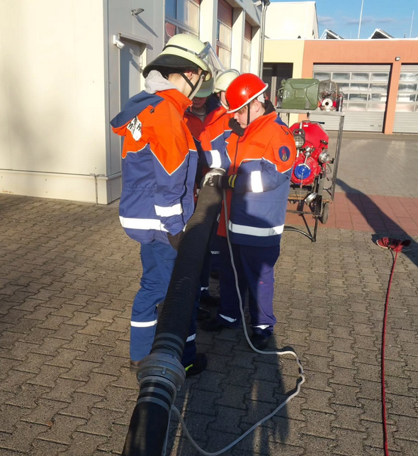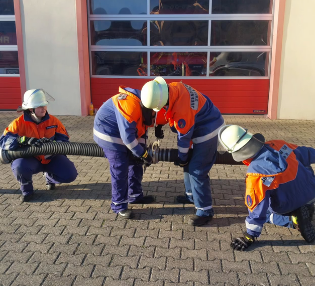 Heute übten wir das Saugleitungskuppeln und den Löschaufbau. Nach einer kurzen Einführung wurde das Kuppeln der Saugleitung mit 4 Saugschläuchen und der Löschaufbau mit zwei Strahlrohren praktisch geübt.👨🚒👩🚒